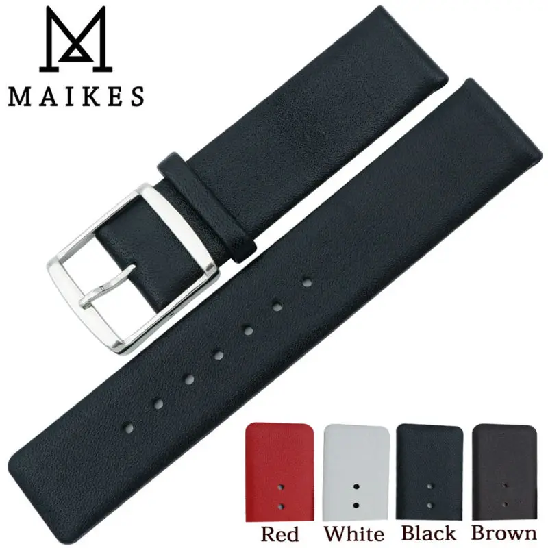 .Gallery of MAIKES High Quality Double Sided Genuine Leather Watch Band Strap 16 18 20 22 mm Thin Soft Black Watchbands For CK Calvin Klein